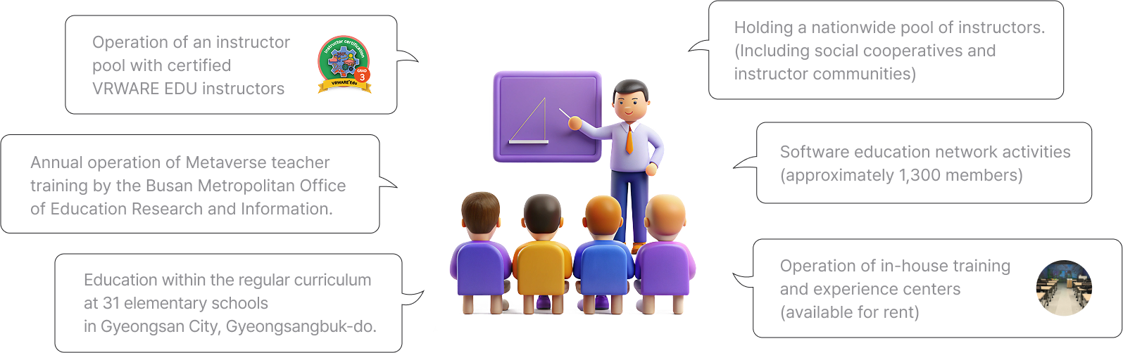 VRWARE Edu School is an effective educational solution that supports the creation of 3D (stereoscopic) VR spaces and metaverse experiences.